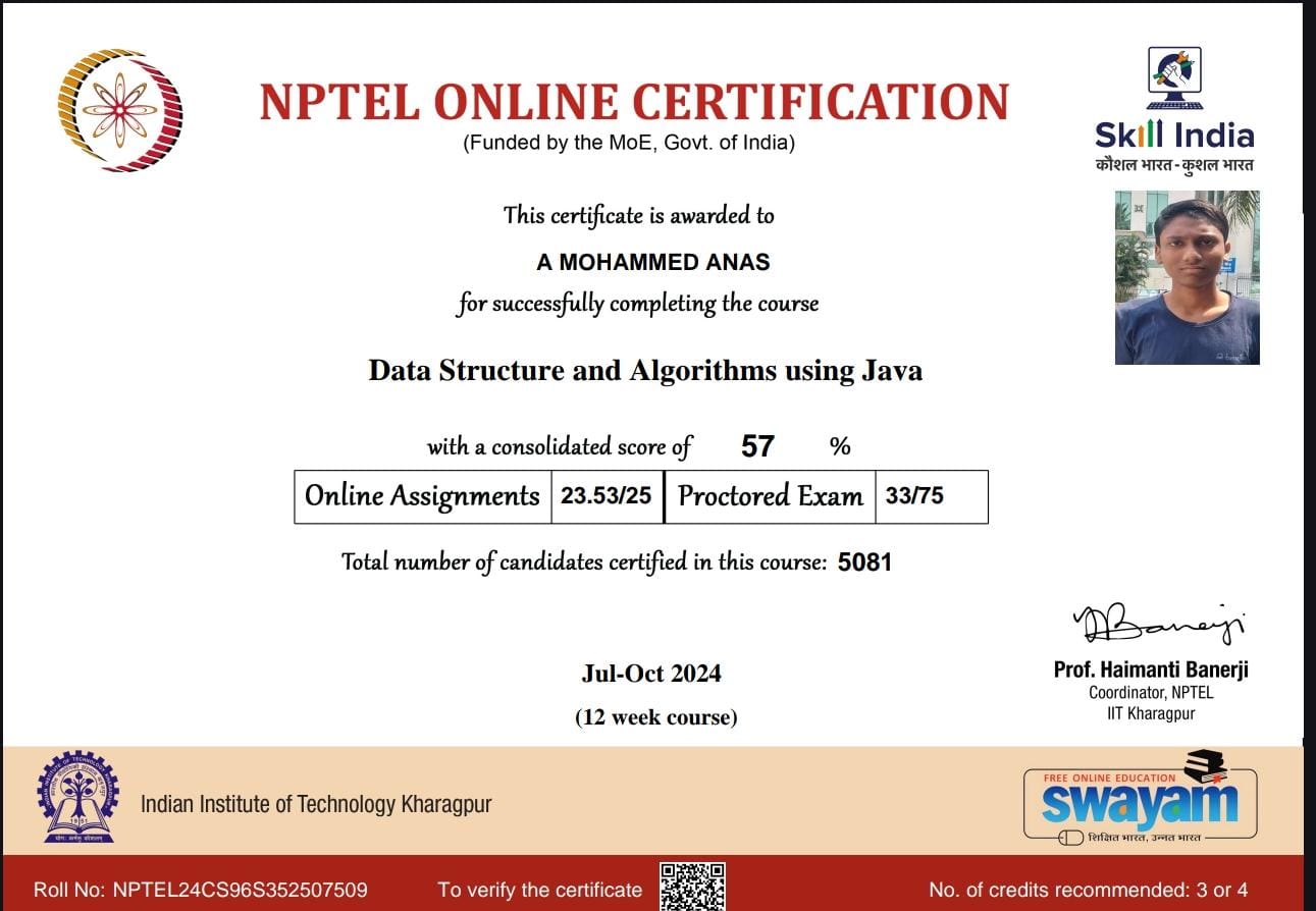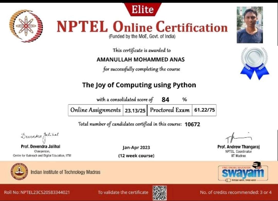 I’m A. Mohammed Anas Aman, a passionate and self-driven AI & Data Science student, constantly exploring the intersection of technology, creativity, and purpose.